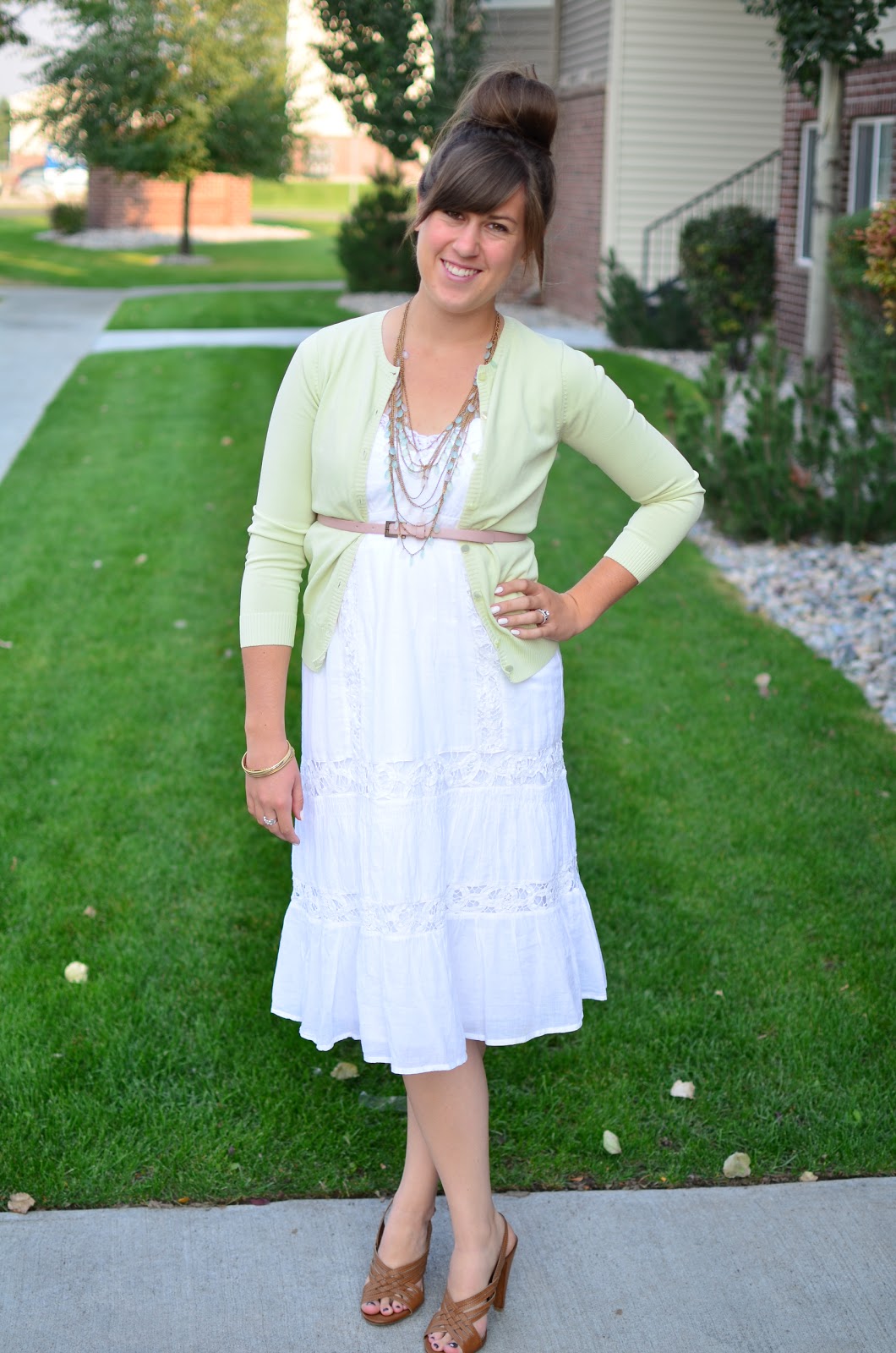 The Sundress. If I ever have a summer pregnancy I think I will live in Sundresses. They are basically the jeans and tee of dresses. They are super comfy and can easily be dressed up or down. This dress could be given a denim jacket and some boots and instantly become a cute casual outfit. Or you could add some sandals and long pendant necklace. Really, the possibilities are endless. I hunted for this white Sundress for three years... yes, three years. So if it takes you some time to find the dress that is just right for you don't dismay, it's out there somewhere!
